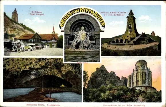 Ak Steinthaleben Kyffhäuserland, Kyffhäuser, Denkmal Kaiser Wilhelm I, Neptungrotte, Barbarossahöhle