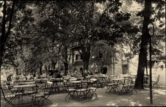 Ak Steinthaleben Kyffhäuserland in Thüringen, HOG Barbarossahöhle, Gartenlokal