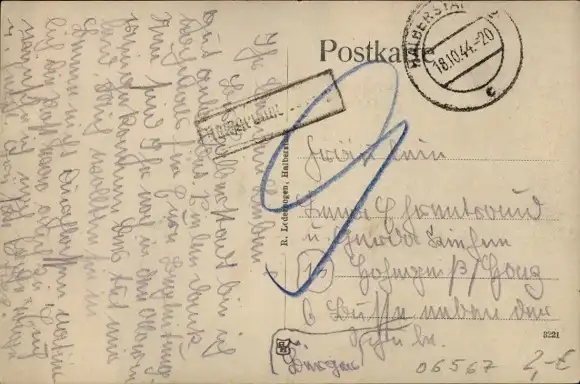 Zustand siehe Scan, gelaufen, 1944 - ca 14 cm X 9 cm