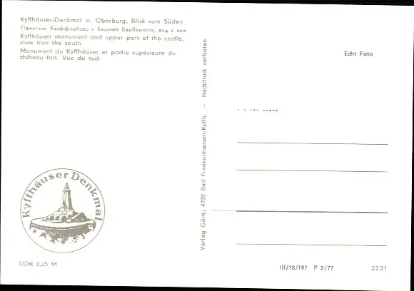 Ak Steinthaleben Kyffhäuserland in Thüringen, Kyffhäuser, Denkmal, Oberburg