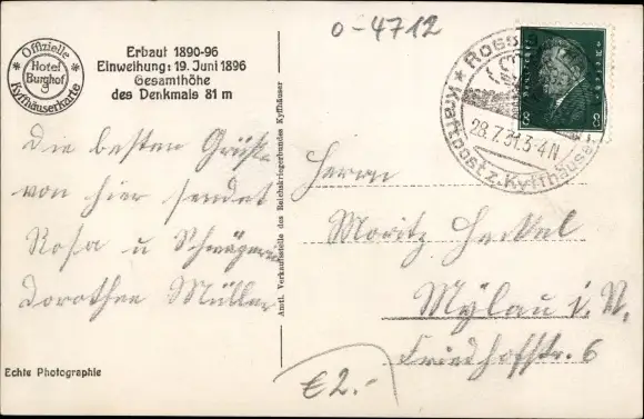 Zustand, siehe Scan, gelaufen, 1931 - ca 14 cm X 9 cm
