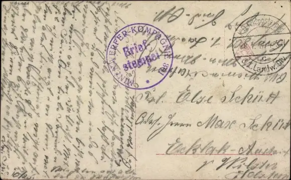 Ak Stempel Deutsche Feldpost 1. WK, 1. Landw. Div., Minenwerfer Kompagnie 301
