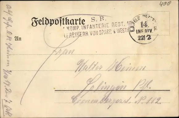 Ak Stempel Deutsche Feldpost 1. WK, 14. Inf. Div. Kompagnie Infanterie Regiment 16