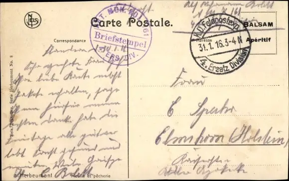 Ak Stempel Deutsche Feldpost 1. WK, 4. Ersatz Division, Abt. Mun. Kol. 161