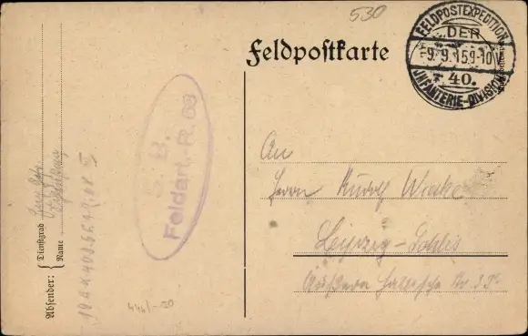 Ak Stempel Deutsche Feldpost 1. WK, 40. Inf. Div., Feldartillerie-Regiment 68