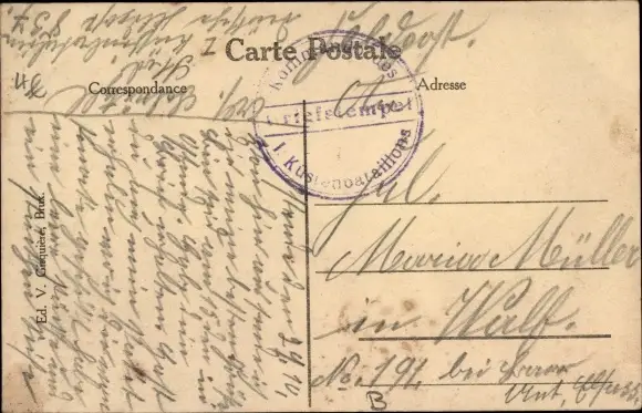 Ak Stempel Deutsche Feldpost 1. WK, Kommando des 1. Küstenbataillons