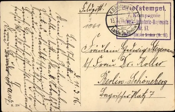 Ak Stempel Deutsche Feldpost 1. WK, Landw. Div. Bredow Nr. 18, 7. Komp. Landw. Inf. Regt. Nr. 57