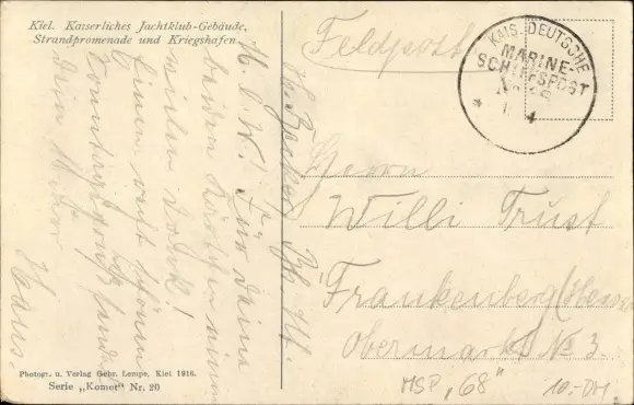 Ak Stempel Marinepost MSP Nr. 68, Linienschiff Pommern