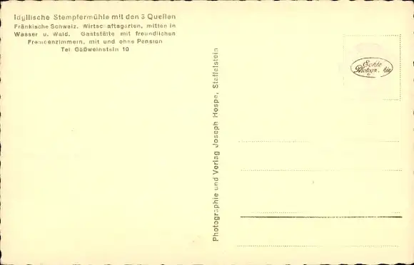 Ak Stempfermühle Gößweinstein in Oberfranken