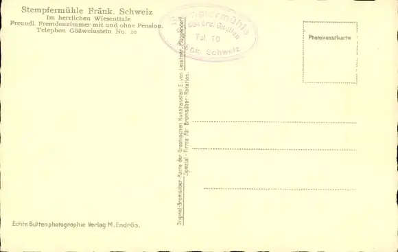 Ak Stempfermühle Gößweinstein in Oberfranken, Gasthaus