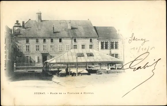 Ak Stenay Lothringen Meuse, Place de la Fontaine, Hopital