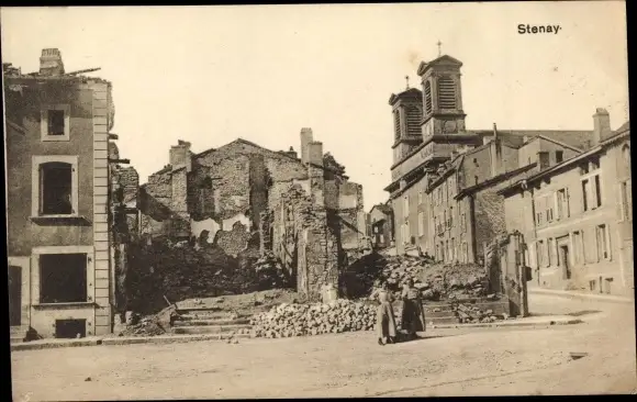 Ak Stenay Lothringen Meuse, Straßenpartie, zerstörte Gebäude, I. WK
