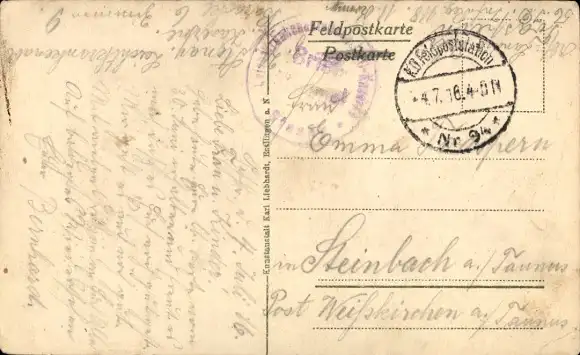 Zustand, siehe Scan, gelaufen, 1916 - ca 14 cm X 8 cm