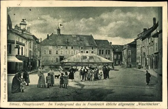 Ak Stenay Meuse, Hauptlazarett, Waschbecken, Straßenpartie