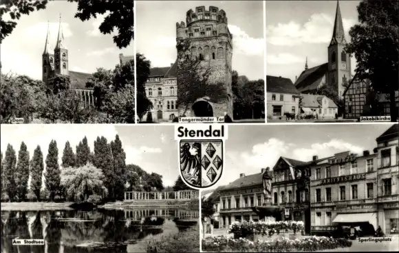 Ak Stendal in der Altmark, Dom, Stadtsee, Tangermünder Tor, Jakobikirche, Sperlingsplatz, Wappen