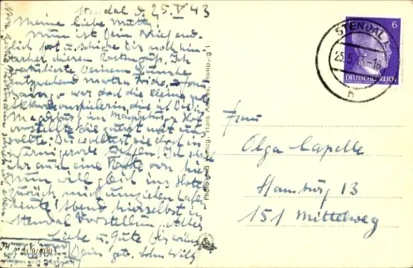 Zustand, siehe Scan, gelaufen, 1943 - ca 9 cm X 14 cm