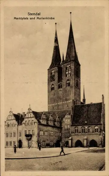 Ak Stendal in der Altmark, Marktplatz, Marienkirche