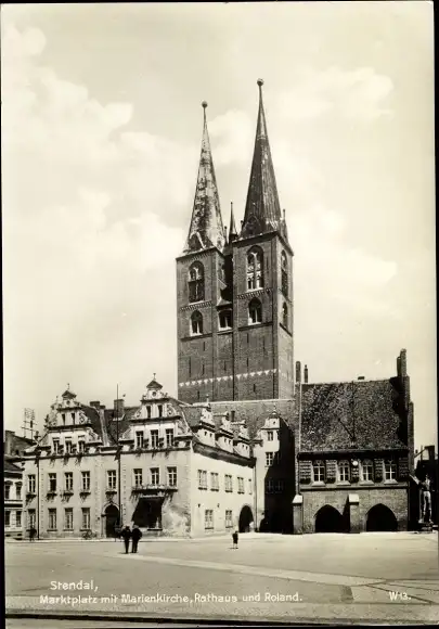 Ak Stendal in der Altmark, Marktplatz, Marienkirche, Rathaus, Roland, Architektur