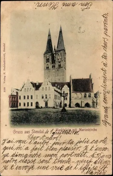 Ak Stendal in der Altmark, Marktplatz mit Marienkirche