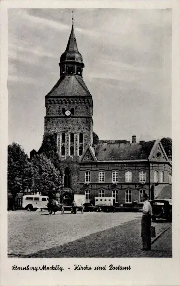 Ak Sternberg in Mecklenburg, Kirche, Postamt