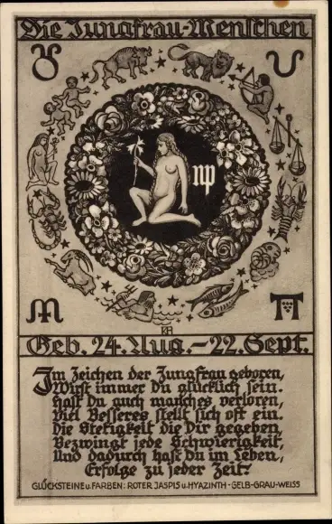 Ak Sternzeichen Jungfrau, Virgo, 23. August bis 23. September