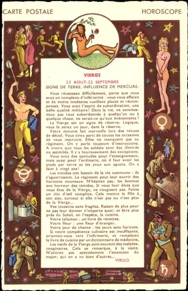 Ak Sternzeichen Jungfrau, Virgo, 23. August bis 23. September