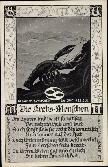 Ak Sternzeichen Krebs, Cancer, 22. Juni bis 22. Juli