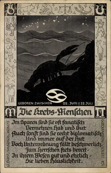 Ak Sternzeichen Krebs, Cancer, 22. Juni bis 22. Juli