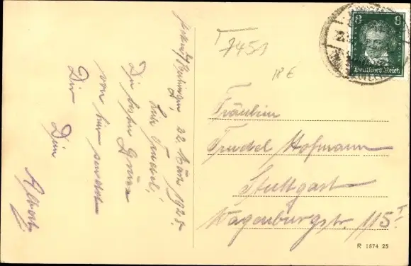 Zustand, siehe Scan, gelaufen, 1925 - ca 14 cm X 9 cm