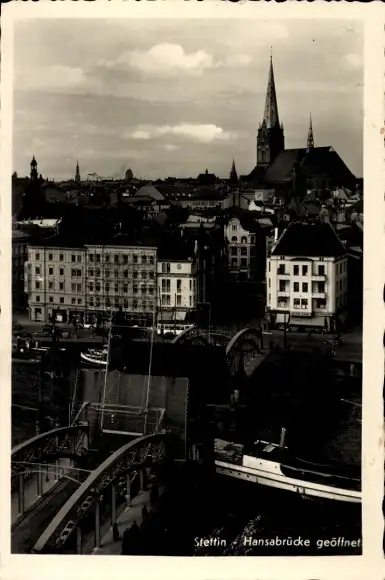 Ak Stettin Pommern, Teilansicht der Stadt, Blick auf die Hansabrücke