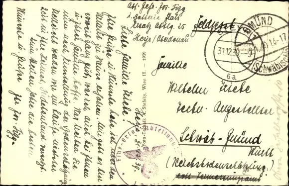Zustand, siehe Scan, gelaufen, 1939 - ca 14 cm X 9 cm