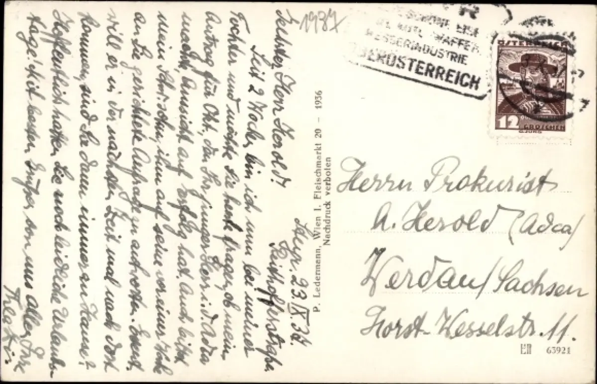Zustand, siehe Scan, gelaufen, 1937 - ca 14 cm X 9 cm