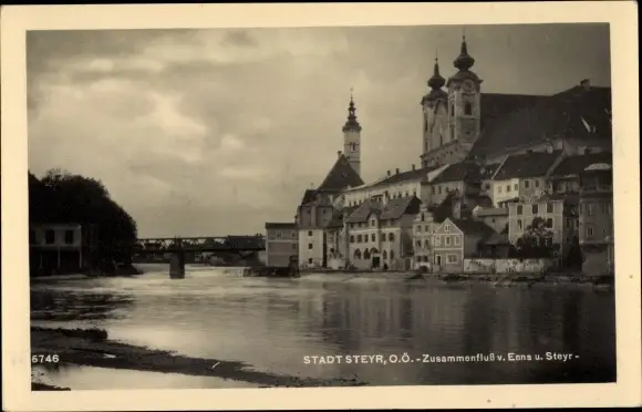 Ak Steyr in Oberösterreich, Zusammenfluss von Enns u. Steyr