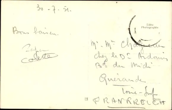 Zustand, siehe Scan, gelaufen, 1951 - ca 14 cm X 9 cm