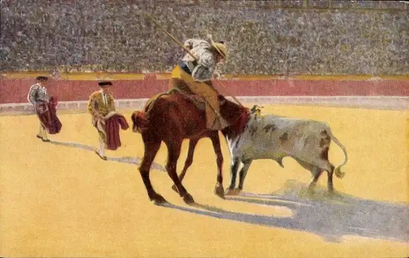 Ak Stierkampf, Arena, Torero, Zuschauer, Angriff
