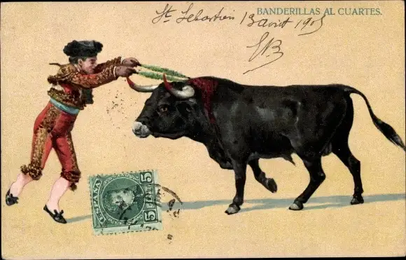 Ak Stierkampf, Banderillas al Cuartes, Matador