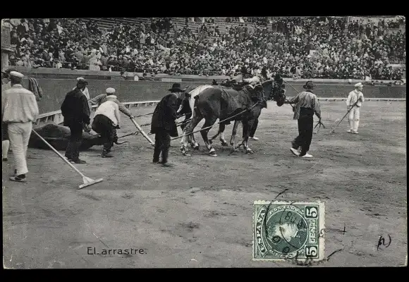 Ak Stierkampf, Erlegter Stier, Torero, Arena, Pferde