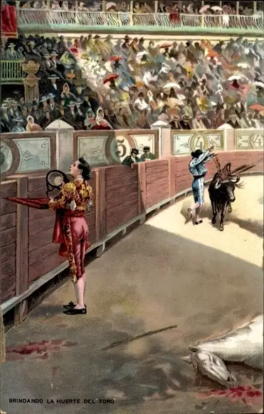 Ak Stierkampf, Kampfarena, Torero, Totes Pferd