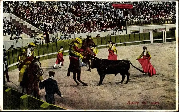 Ak Stierkampf, Kampfarena, Torero, Zuschauer, Rotes Tuch