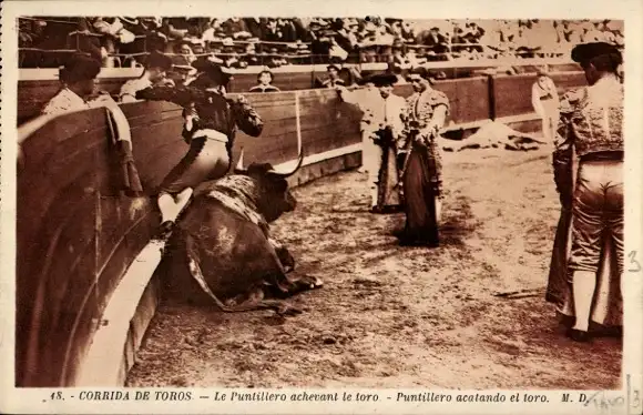 Ak Stierkampf, Puntillero gehorcht dem Stier