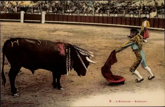 Ak Stierkampf, Torero, Arena, Zuschauer, Angriff