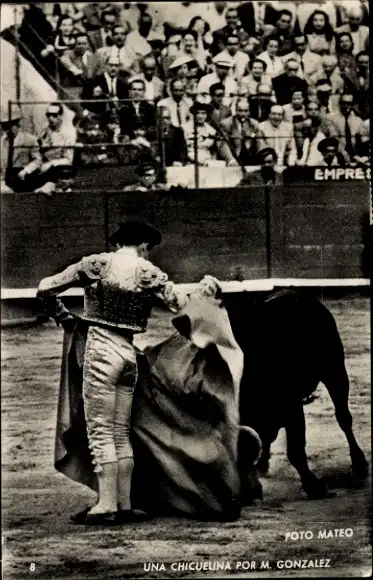 Ak Stierkampf, Torero, Stier greift an, Zuschauer