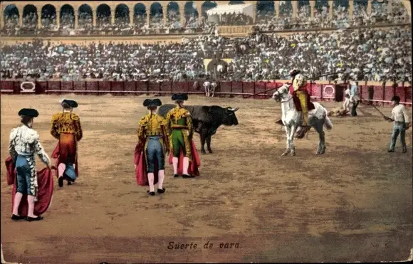 Ak Stierkampf, Toreros, Zuschauer, Stadion, Angriff
