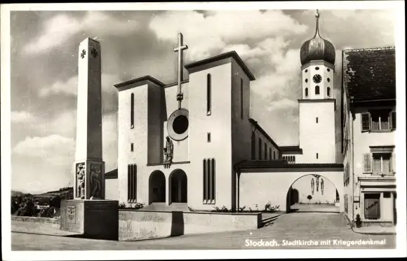 Ak Stockach im Hegau Baden, Stadtkirche, Kriegerdenkmal