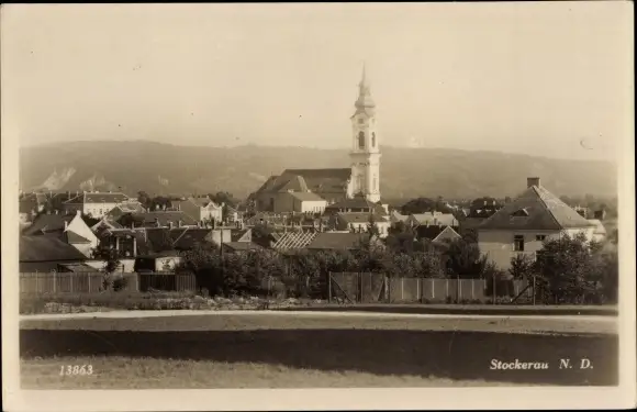 Ak Stockerau in Niederösterreich, Totalansicht der Ortschaft, Kirche