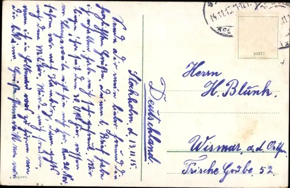 gelaufen 1915, Briefmarke entfernt, sonst guter Zustand