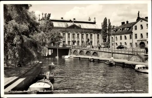 Ak Stockholm Schweden, Riddarhuset, Flusspartie, Boote