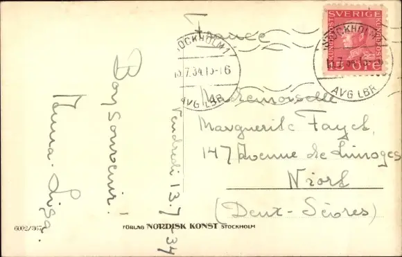 Zustand, siehe Scan, gelaufen, 1934 - ca 14 cm X 9 cm