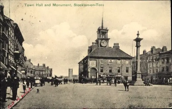 Ak Stockton on Tees Durham England, Town Hall and Monument