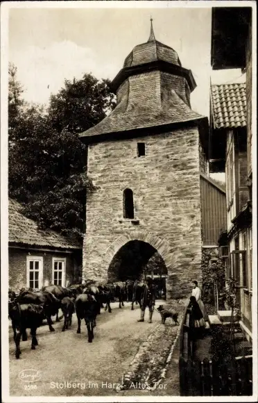 Ak Stolberg Südharz, Viehtrieb durchs alte Tor